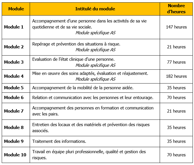 Cf. Arrêté du 10 juin 2021 modifié relatif à la formation conduisant au Diplôme d’Etat d’Aide-soignant et portant diverses dispositions relatives aux modalités de fonctionnement des instituts de formation paramédicaux: https://www.legifrance.gouv.fr/loda/id/JORFTEXT000043646160/2023-06-20/