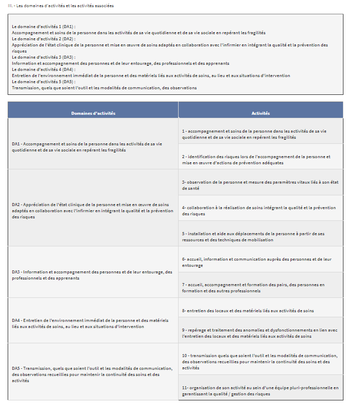 Référentiel d’activités (= Annexe I de l’arrêté du 10 juin 2021 pré-cité)