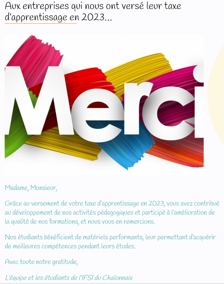 En versant votre Taxe d’Apprentissage à l’Institut de Formation du Chalonnais, vous contribuez à la formation des étudiants en soins infirmiers et des élèves aides-soignants.